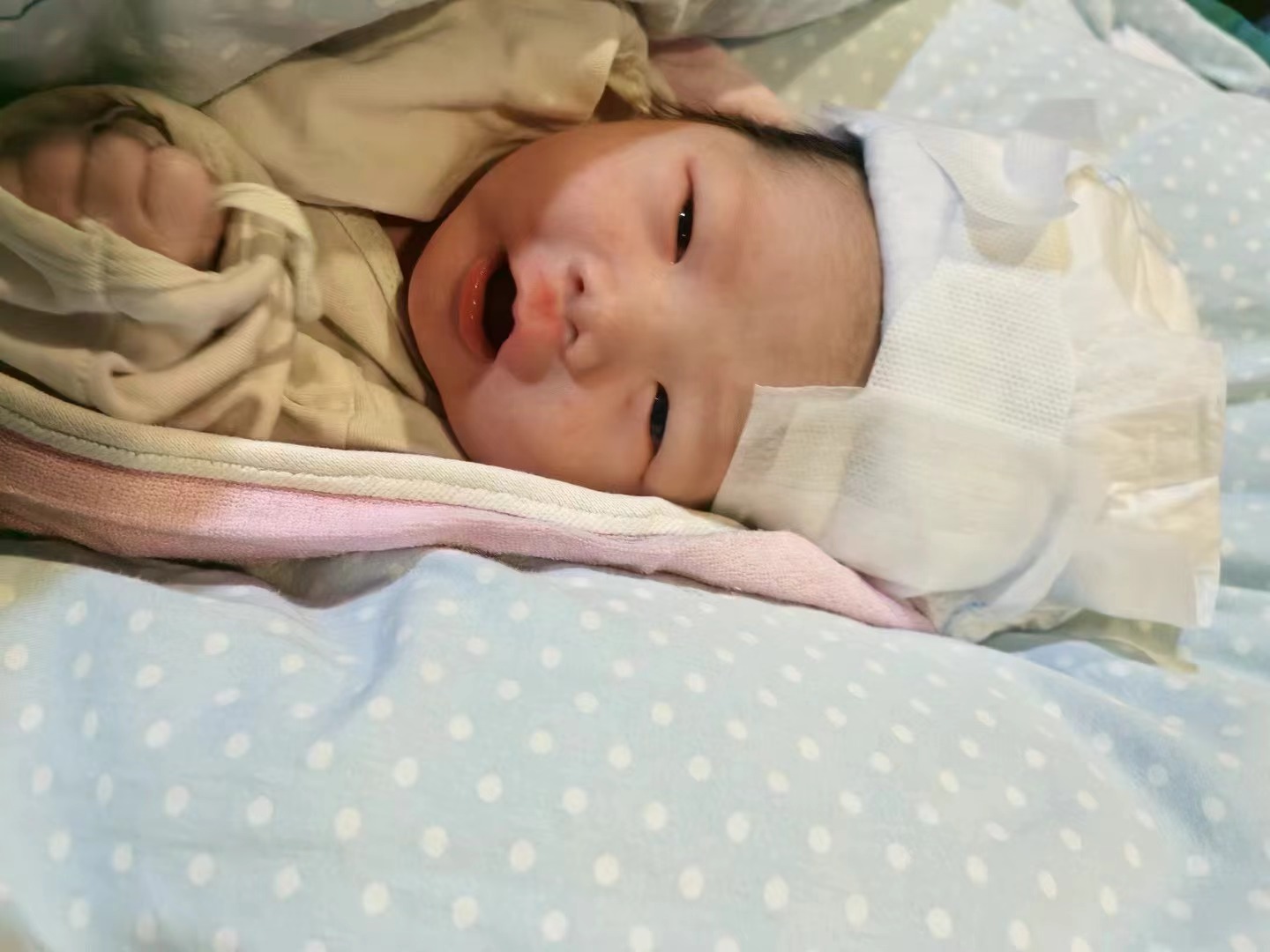 女儿同事喜获男宝宝一枚,母子平安。宝宝长的周正、福相、气定神闲。真好,我也沾沾喜气。🌹